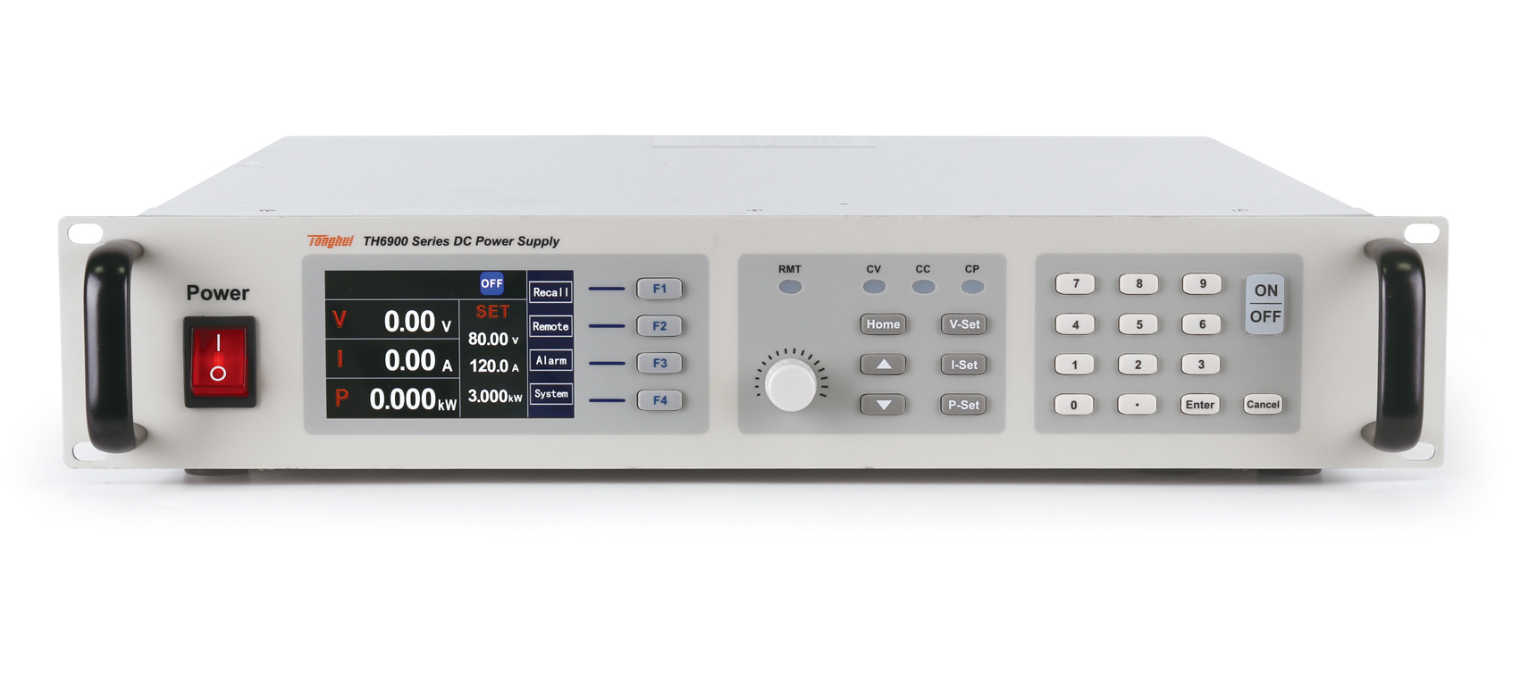 TH6900系列是宽范围输出的可编程开关直流电源,有750W、1500W、3000W三种功率21个型号可选。仪器支持同型号主从并联最多达10台,从而满足更高的输出电流和输出功率需求。