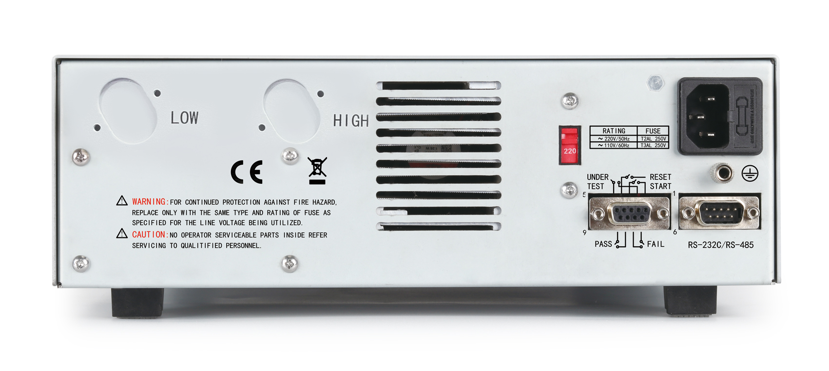 针对高强度测试中,由于测试引线内部断裂、测试工装接触不良等造成测试耐压、绝缘误判未合格的情况,TH9302C/TH9302D两个型号在仪器后面板增加了带CK功能的高压测试端,保障了仪器测试结果的有效性和正确性,可以避免由于测试附件和工装给客户带来的误判损失。