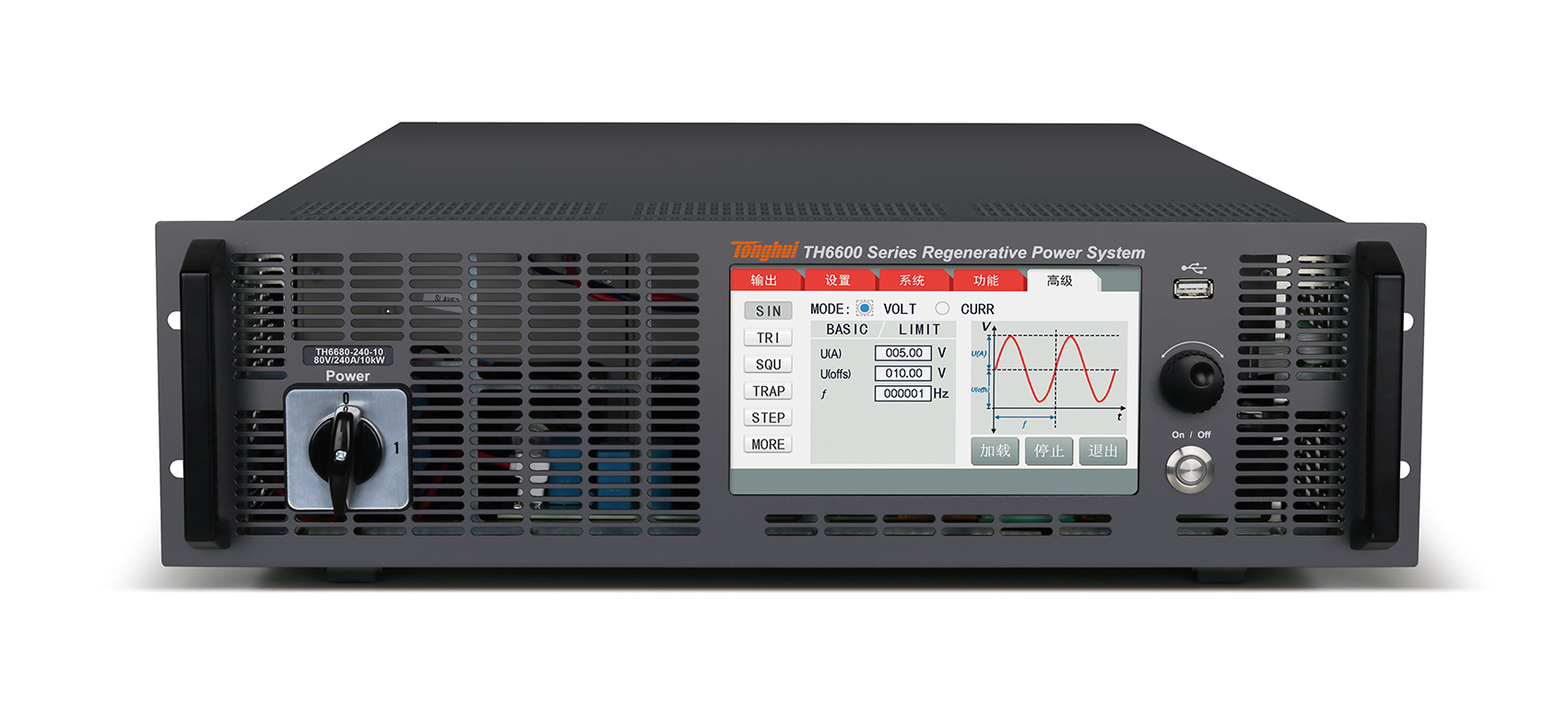 TH6600系列支持主从模式并机,功率最大可扩展至480kW,主动均流功能可保证每台仪器均未工作在最大功率状态;内置函数发生器,内置多种波形模板及编辑任意波形,并可以通过USB接口导入LIST生成波形。