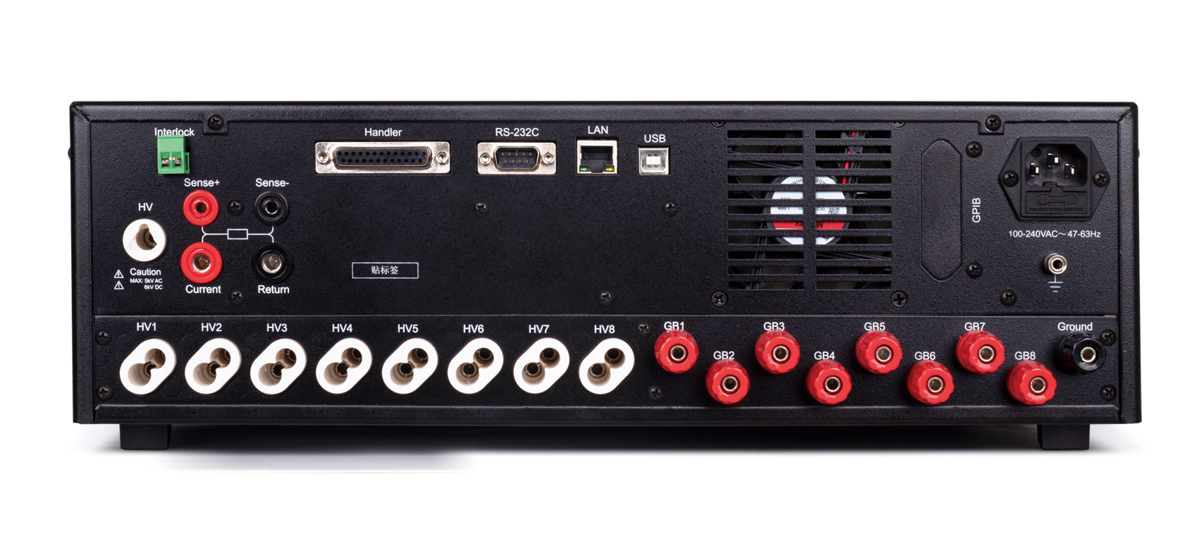 仪器配有适合测试系统使用的RS-232C 、USB 、HANDLER,可选配的GPIB,使得仪器能适应多种不同需要的高安全性和可靠性的自动测试系统。