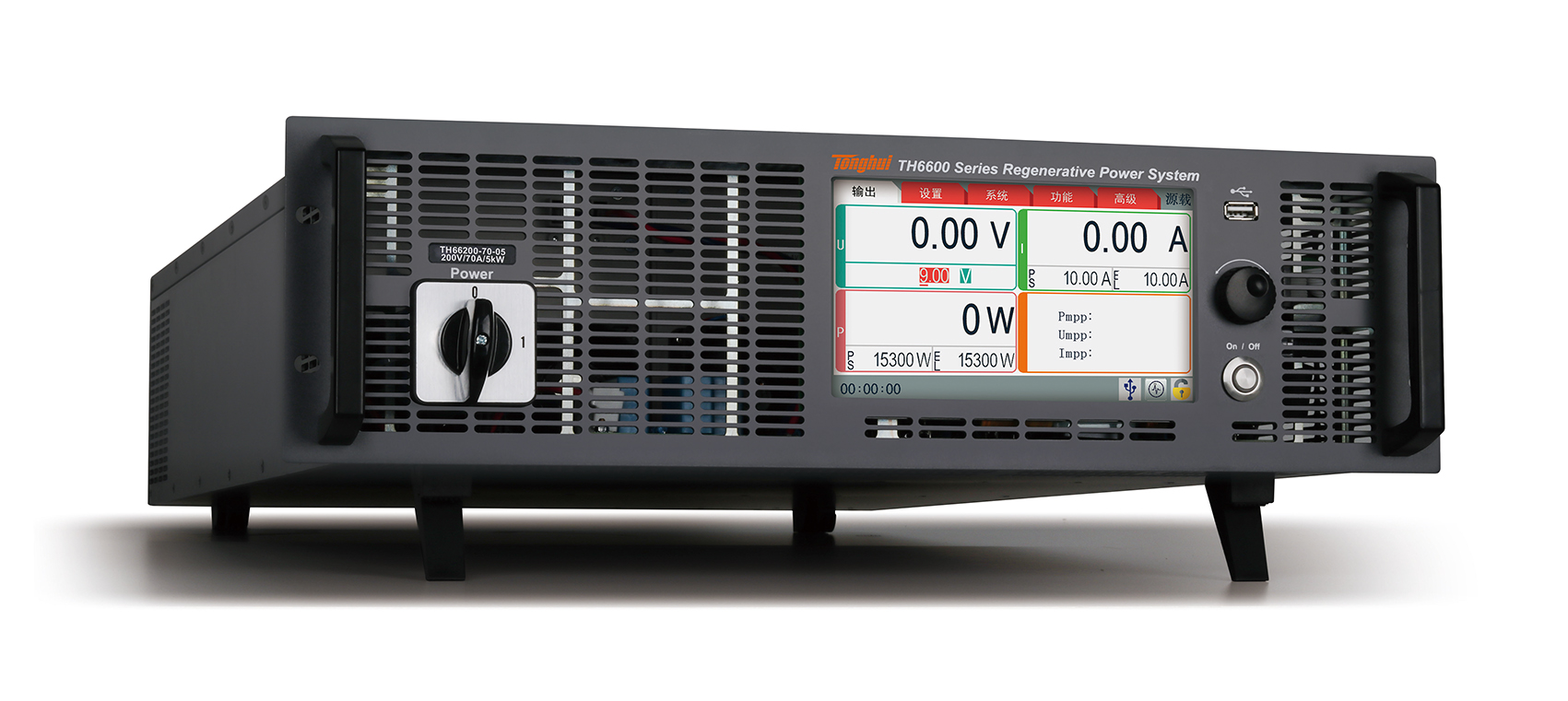 TH6600系列双向回馈式大功率直流电源输出和吸收电流时可快速无缝切换,有效避免电压或电流过冲,适用于电池、电池封装以及电池保护板等储能设备测试