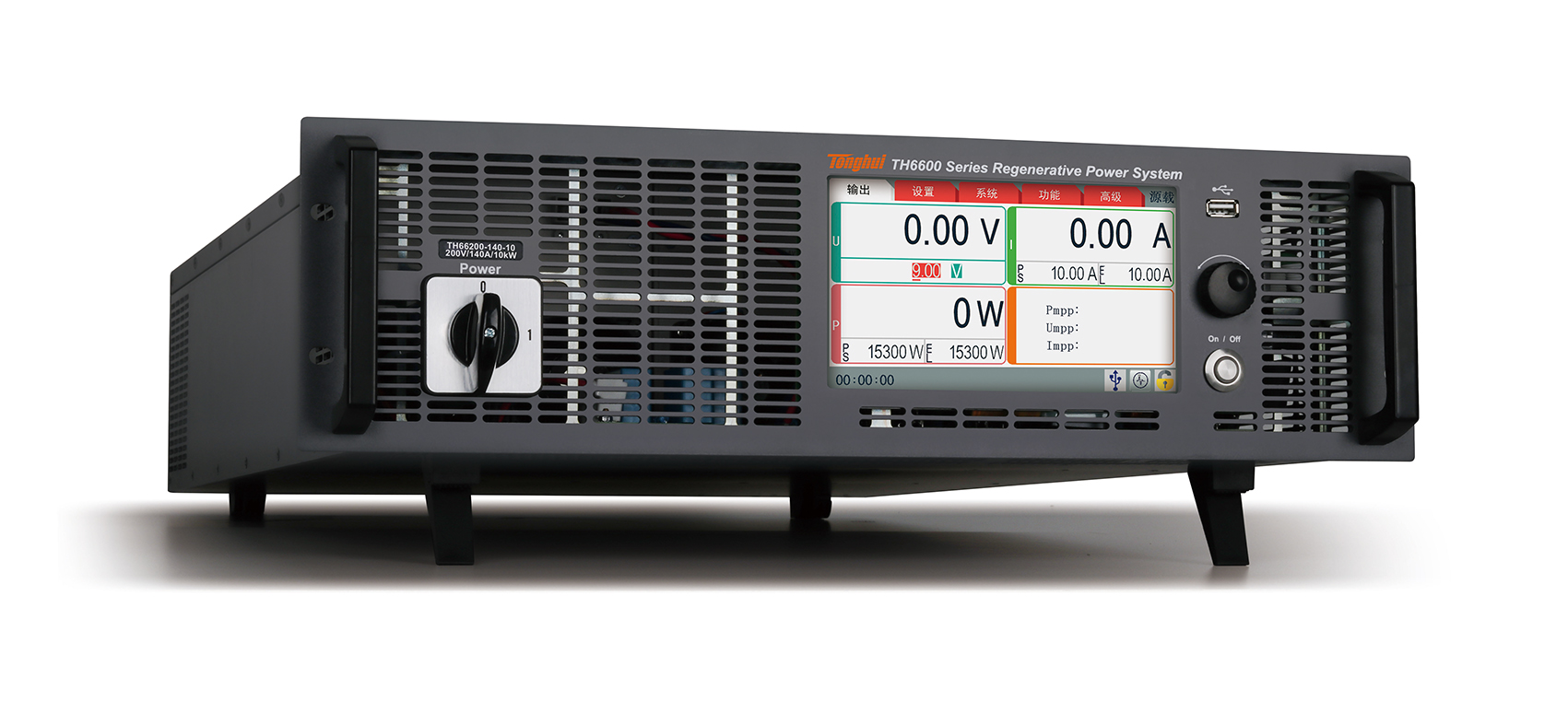 TH6600系列双向回馈式大功率直流电源输出和吸收电流时可快速无缝切换,有效避免电压或电流过冲,适用于电池、电池封装以及电池保护板等储能设备测试