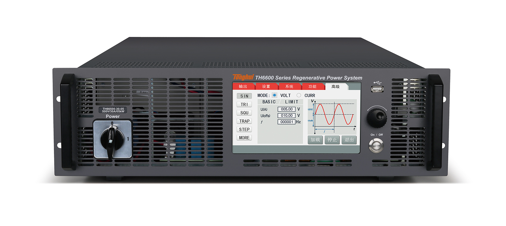 TH6600系列支持主从模式并机,功率最大可扩展至480kW,主动均流功能可保证每台仪器均未工作在最大功率状态;内置函数发生器,内置多种波形模板及编辑任意波形,并可以通过USB接口导入LIST生成波形。