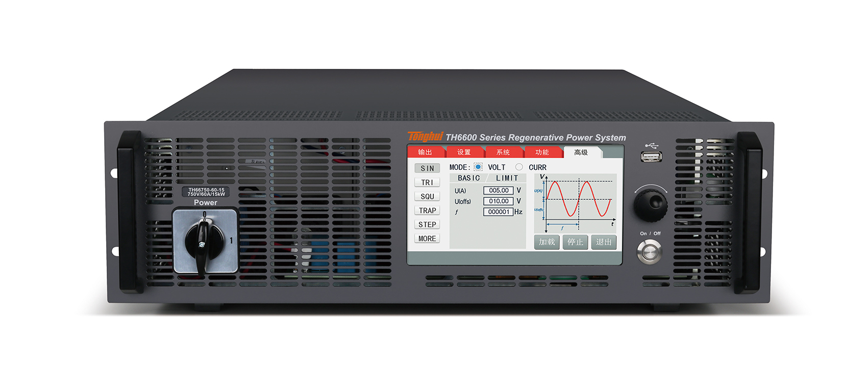 TH6600系列支持主从模式并机,功率最大可扩展至480kW,主动均流功能可保证每台仪器均未工作在最大功率状态;内置函数发生器,内置多种波形模板及编辑任意波形,并可以通过USB接口导入LIST生成波形。