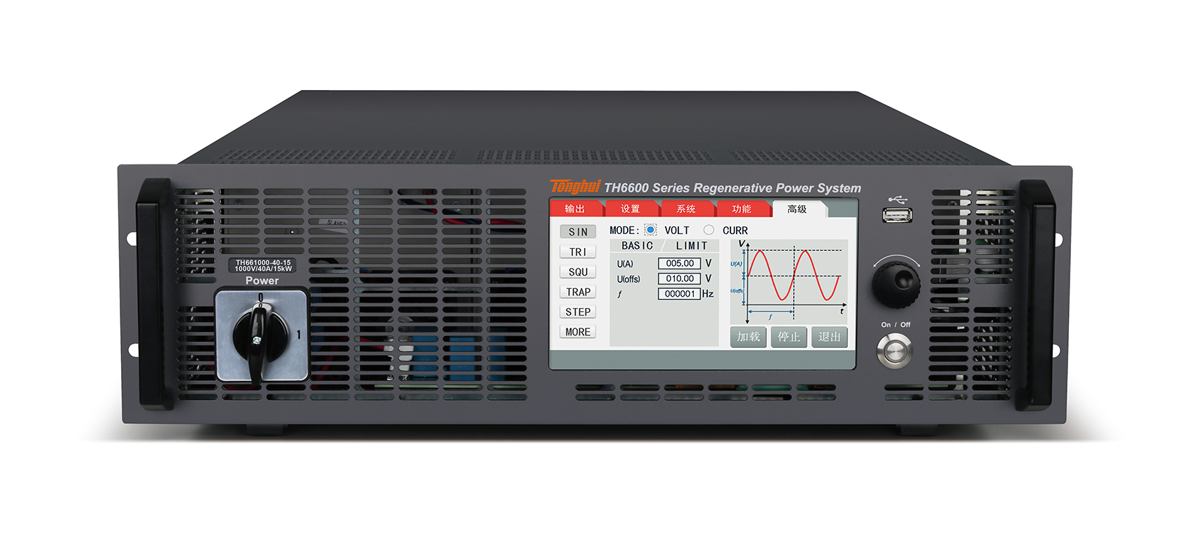 TH6600系列支持主从模式并机,功率最大可扩展至480kW,主动均流功能可保证每台仪器均未工作在最大功率状态;内置函数发生器,内置多种波形模板及编辑任意波形,并可以通过USB接口导入LIST生成波形。
