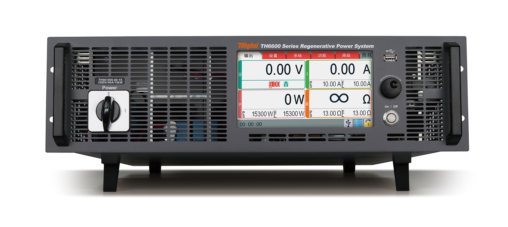 TH6600系列融合了两个设备,在3U的体积内集成了一台电源和一台负载。在源模式时,为一台独立且具有强大功能的电源,输出功率;在汇模式时,为一台独立的回馈式负载,吸收功率同时将能量高效洁净的返回至电网。TH6600系列具有标准的双象限功能。