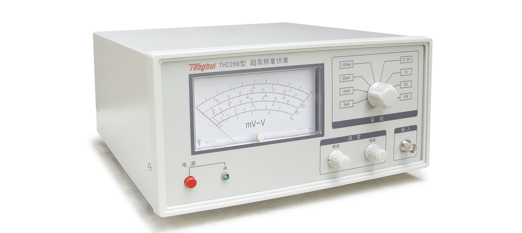 ■ TH2268超高频毫伏表主要用于工厂、部队、学校、科研实验室测量1kHz-1200MHz频率范围的正弦波有效值电压。仪器采用检波放大电路,具有良好的超高频特性,它解决了从低频到超高频电压的过渡测量。