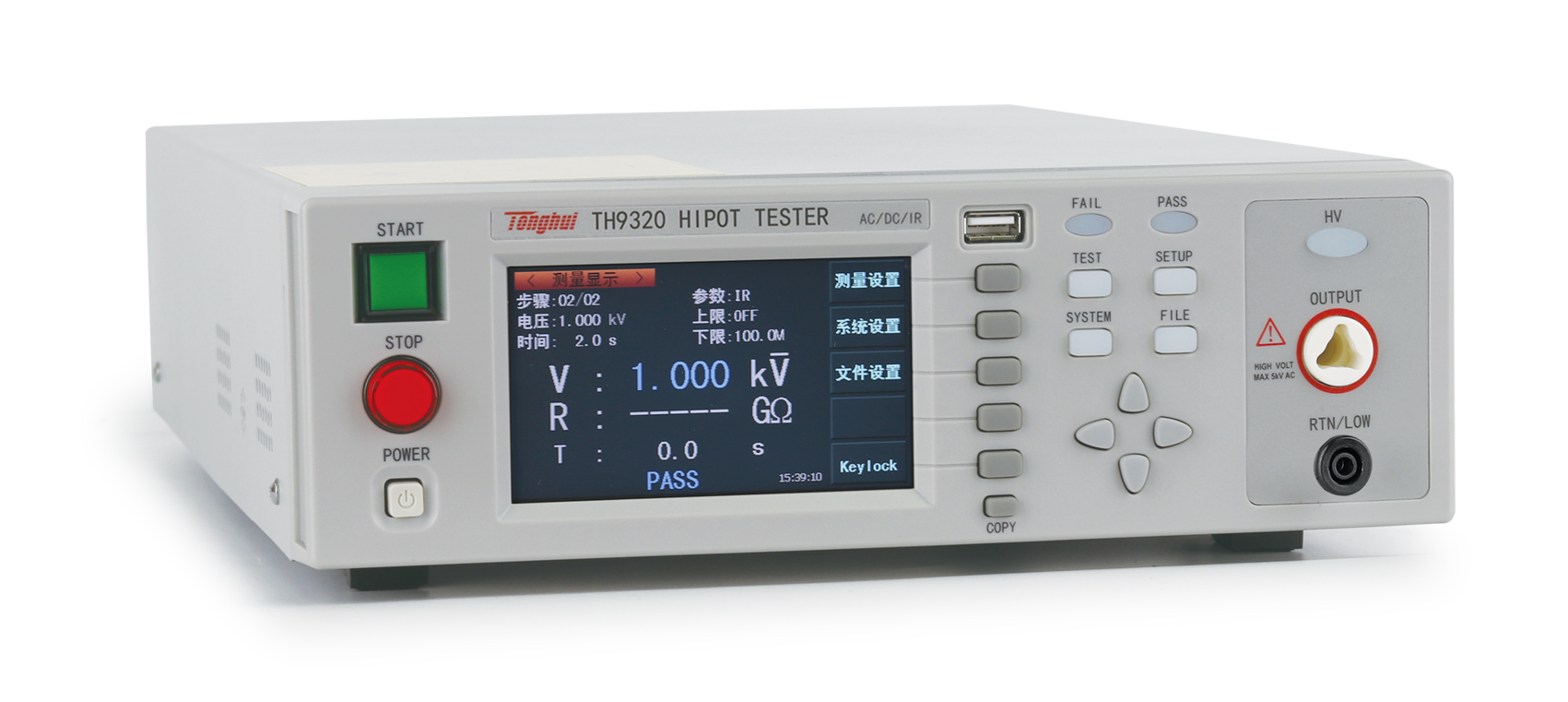 ■ TH9320交直流耐压绝缘测试仪是一款小功率经济型智能安规测试仪器。体积小、重量轻、外形美观、操作简便。TH9320产品可广泛应用于家用电器、变压器、电气设备、元器件的安全性能检查。
