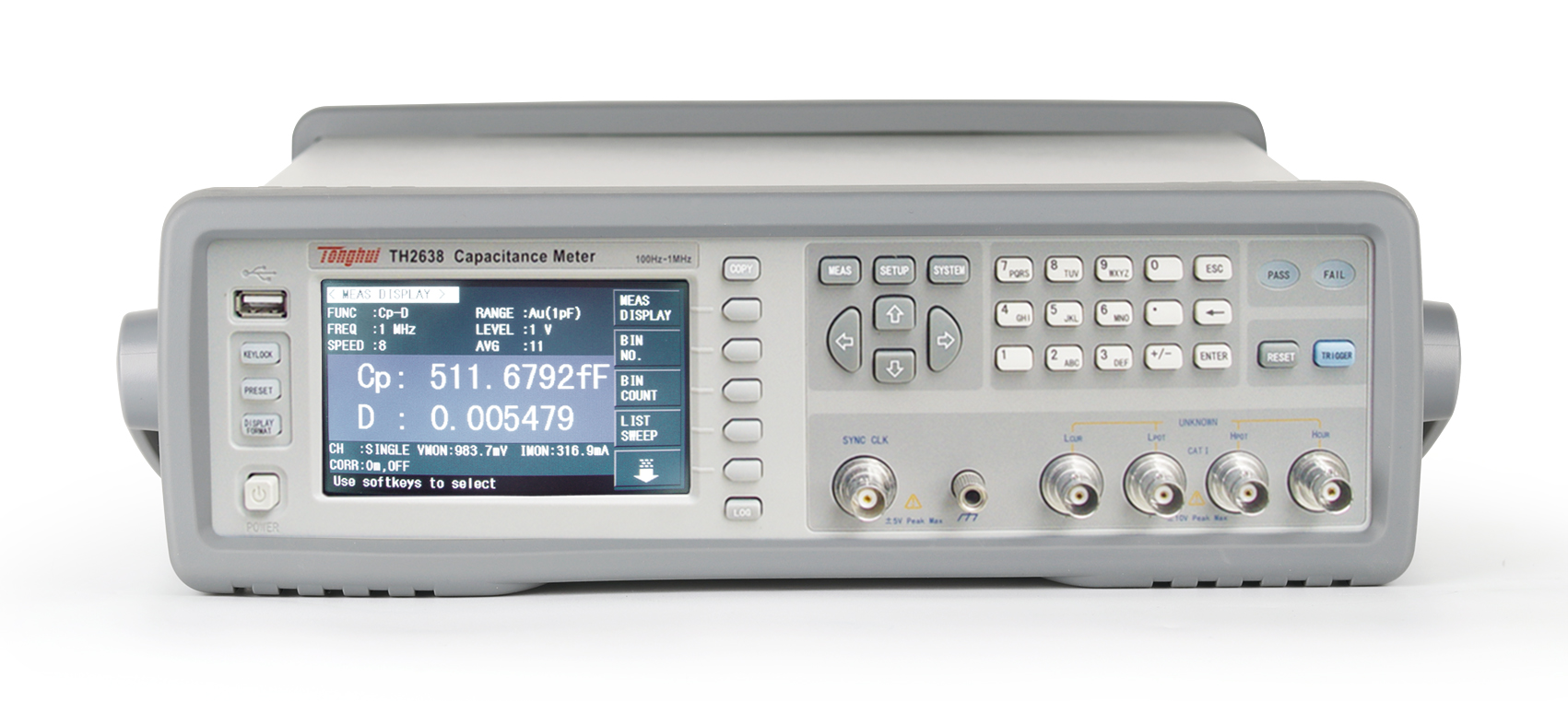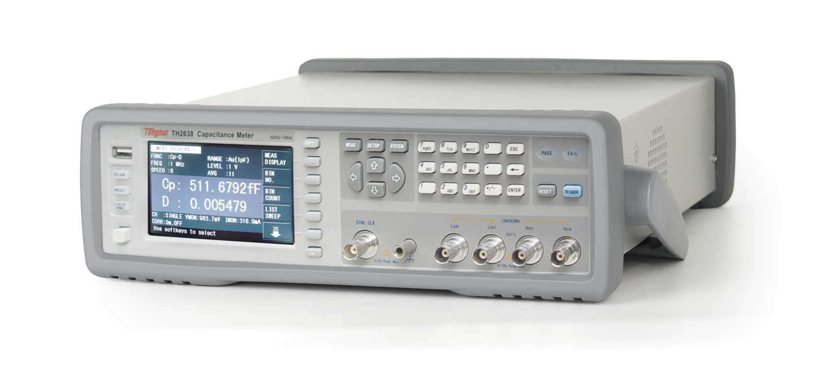 TH2638系列高速精密电容测量仪是具有高达1MHz测试频率的新型电容测量仪,体积小,紧凑便携,便于上架使用。4.3寸的LCD屏幕可选中英文操作界面,操作方便快捷。