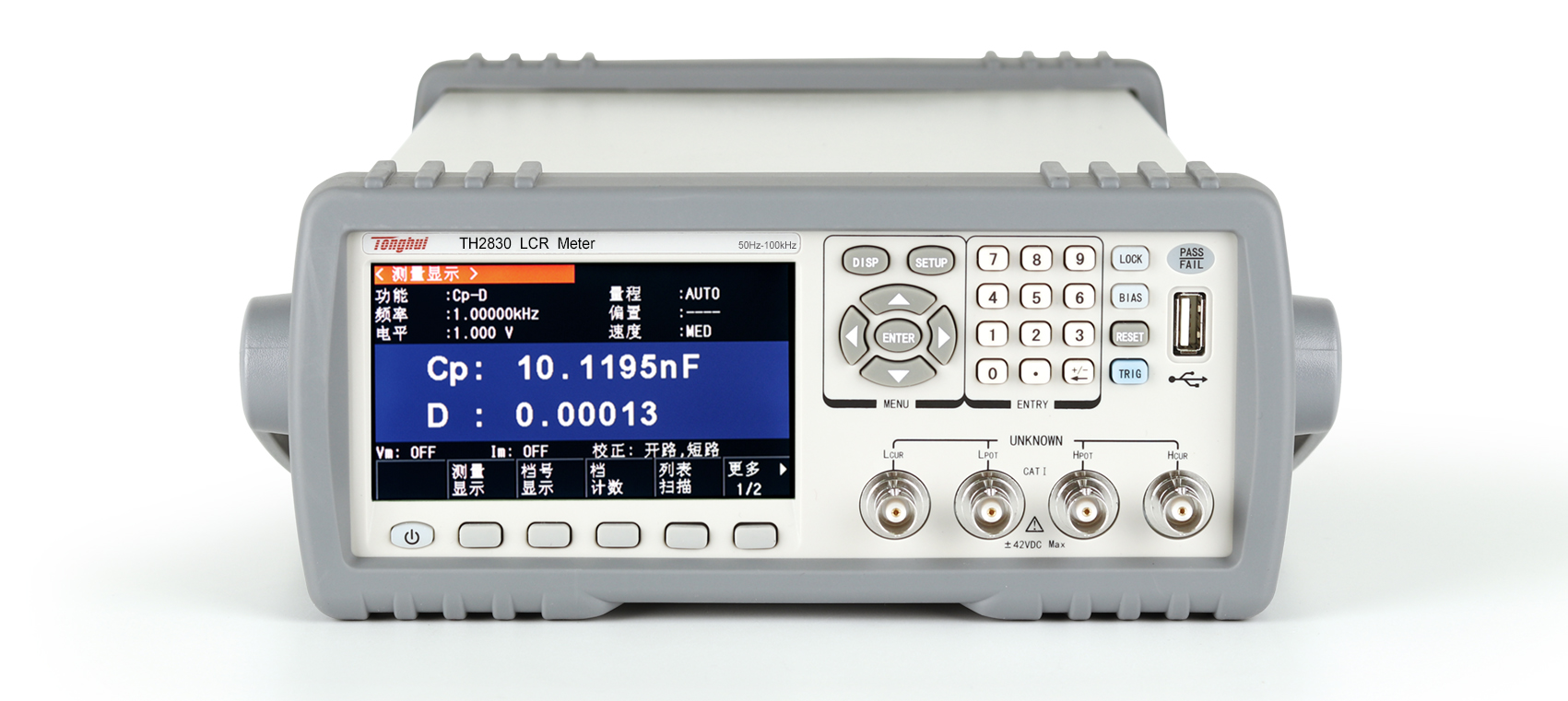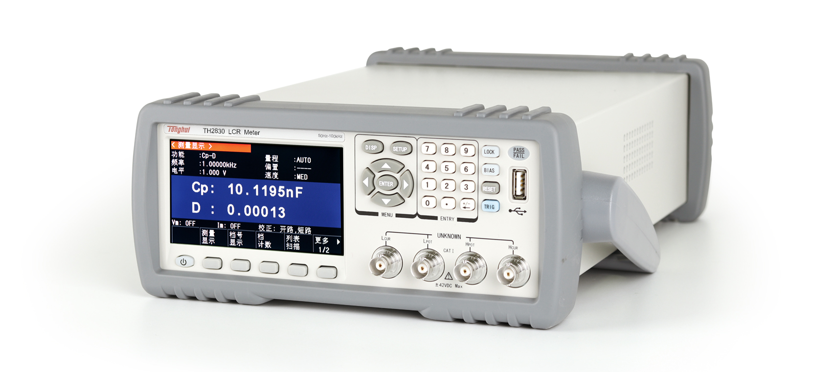 通用功能 | 串、并联等效模式,测试电缆长度:0、1m,平均:1-255次,校准:开路、短路、负载, ALC功能(仅TH2832)量程选择:自动、手动,触发模式:INT、MAN、EXT、BUS,触发延时:0-60s,键盘锁定功能 | |||