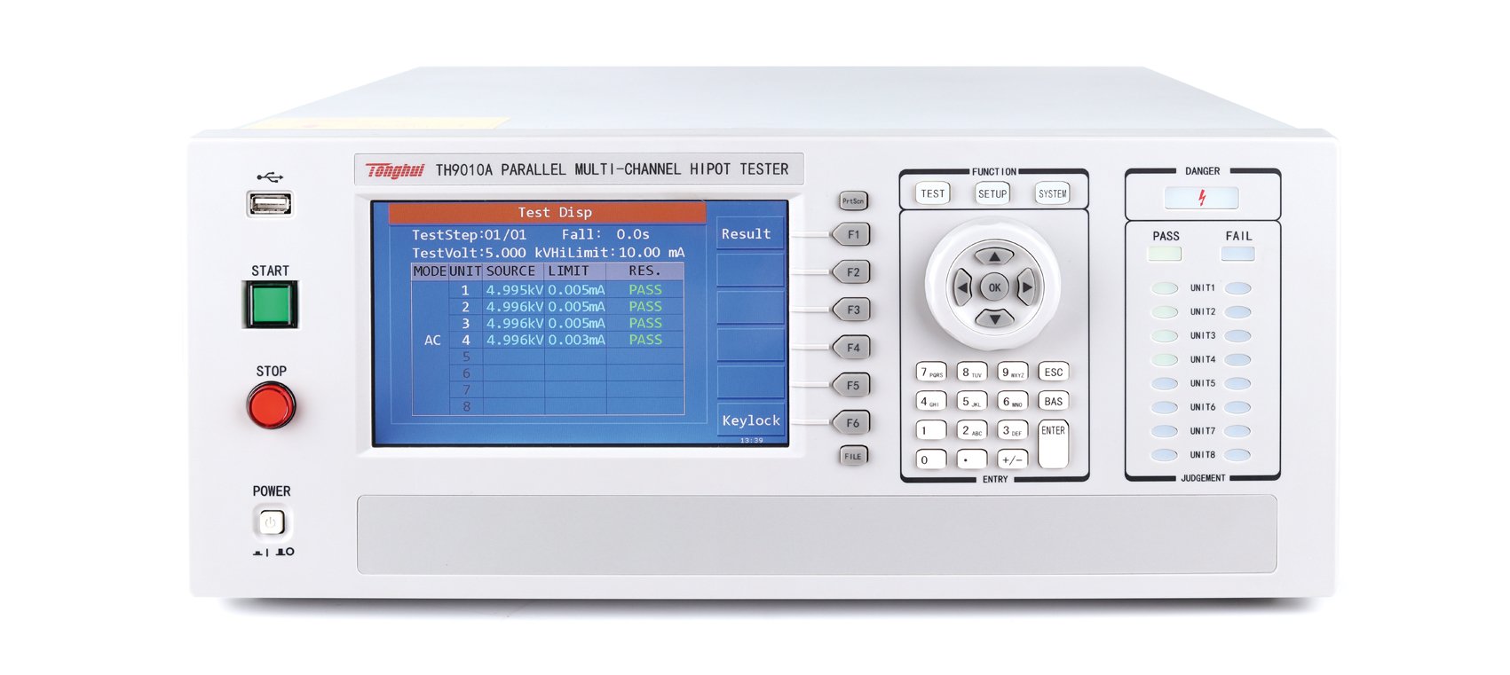 TH9010系列是同惠电子融合多年电器安规测试仪器的开发经验所推出的多通道并行扫描耐压测试仪。一台单机可同时测量8个通道,按通道分别判断测试结果,相当于八台TH9310同时工作,既提高了产线的测试效率,又节约了产线空间。同时,该款仪器可以通过连接扫描器的方式将一台仪器最多扩展至8×16通道以满足客户的实际需求。