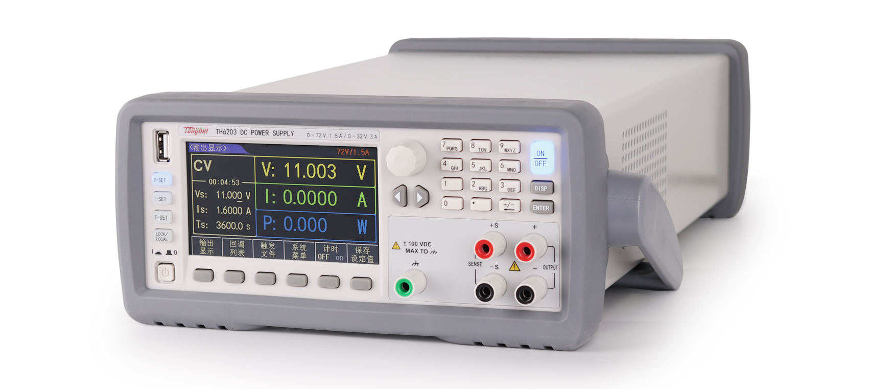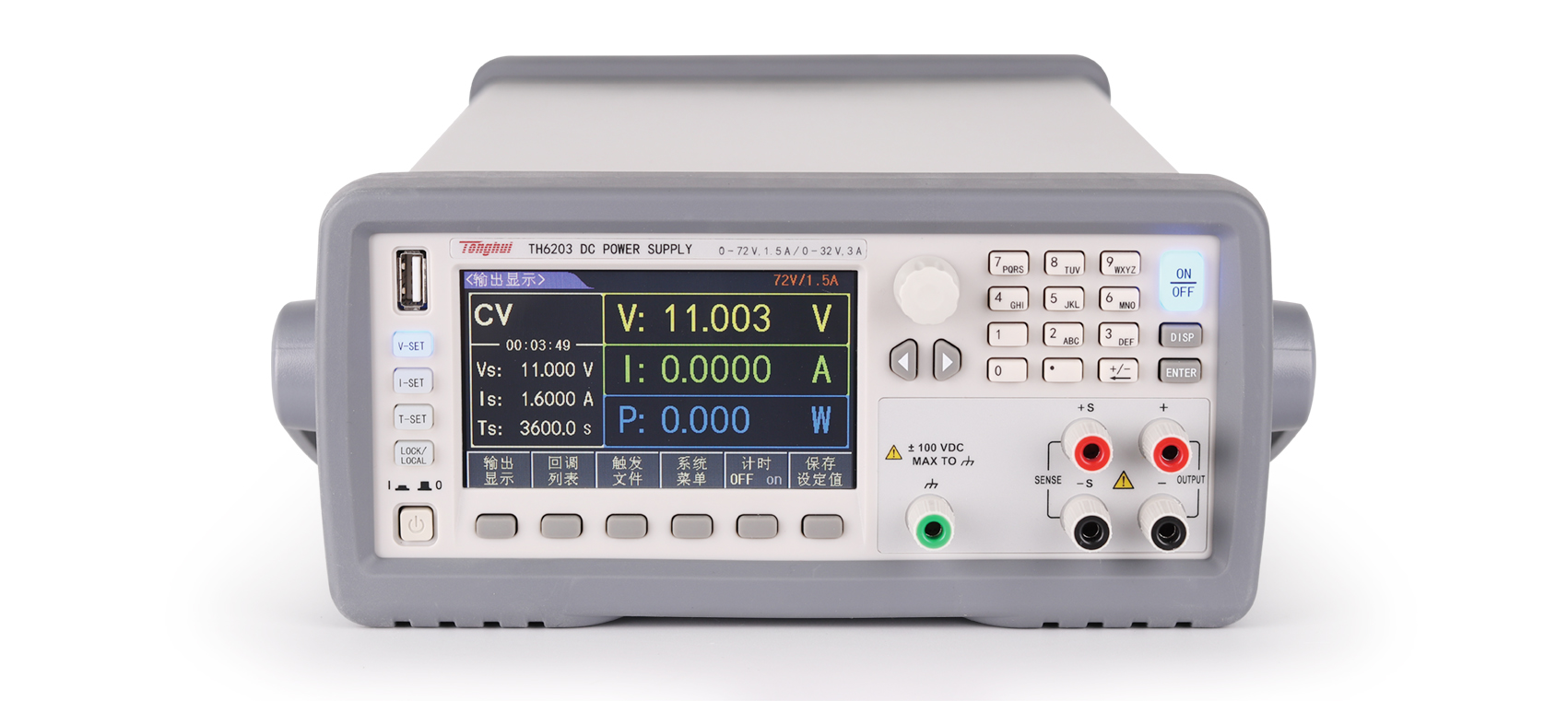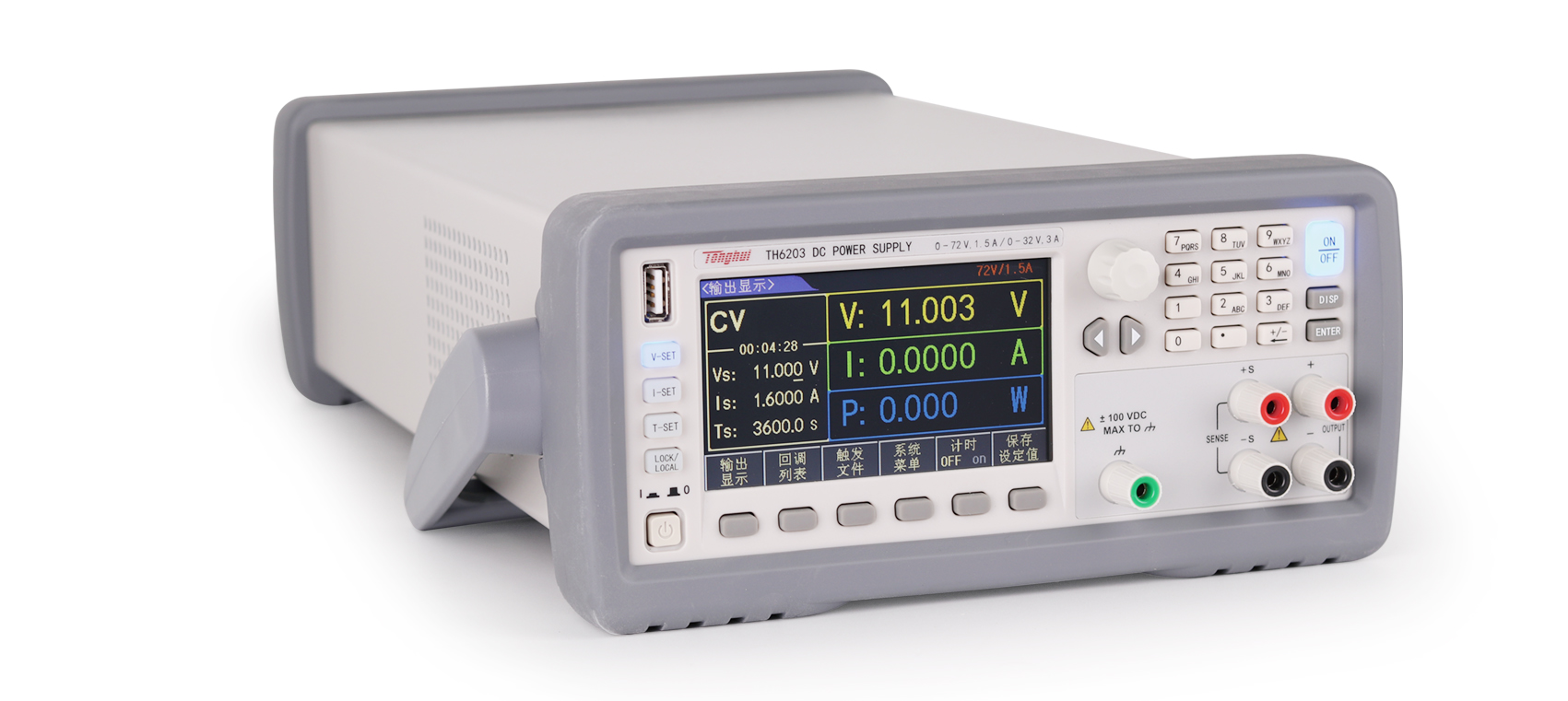 TH6200系列电源前后面板都可以输出,具有1/2标准机箱尺寸,配备齐全的通讯接口,支持SCPI和MODBUS通讯协议,使其可以方便的集成于自动化系统上。