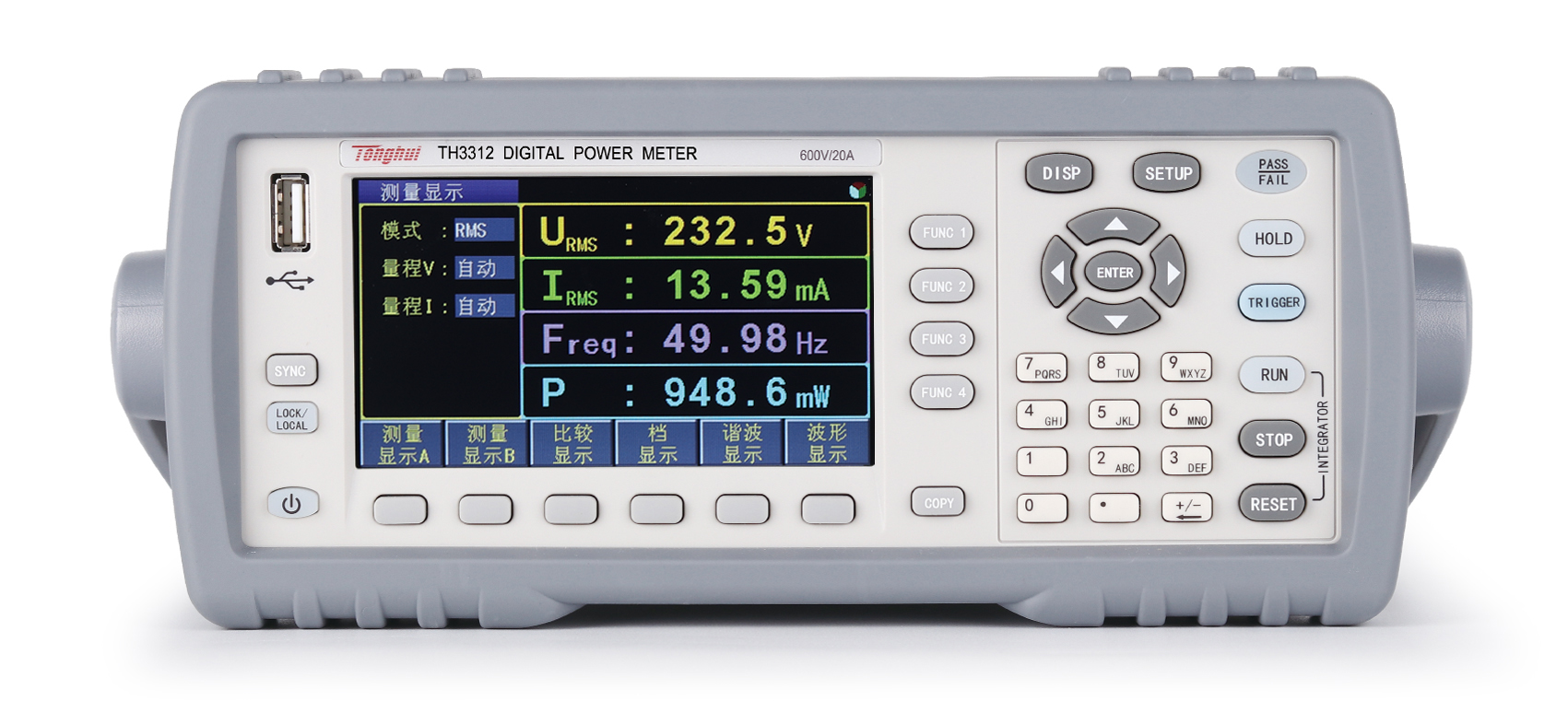 TH3300系列数字功率计具有高频率测试范围及宽频响,提供谐波分析及多种谐波数据显示方式(列表、柱状等); 提供测量输入信号波形显示(电压与电流同时或分别显示)