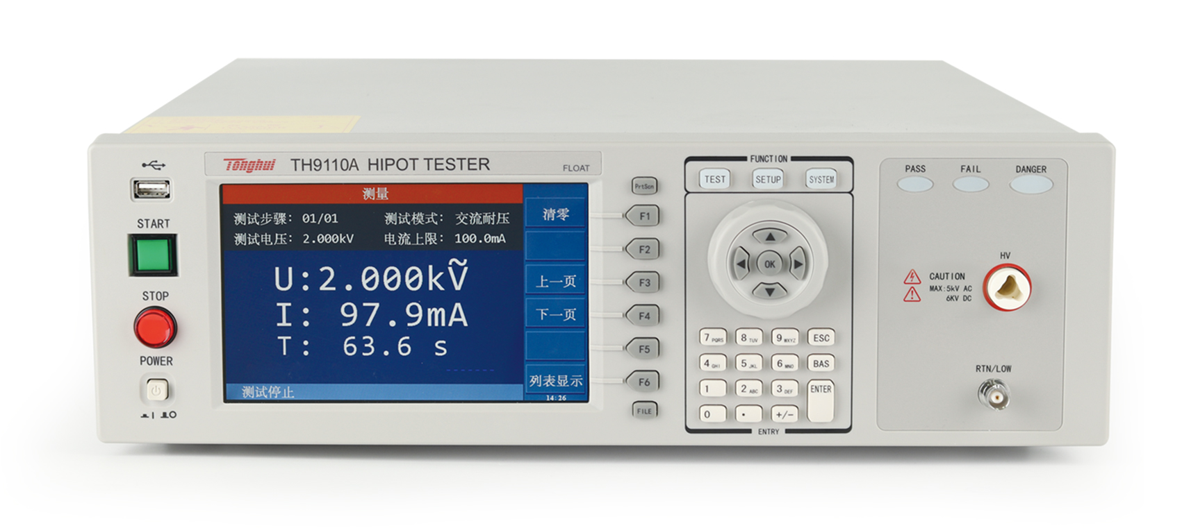 TH9110/TH9110A系列除了基本的交流、直流、绝缘电阻测试外,增加了崩溃电压测试功能 ,可分析产品的击穿点电压,满足特定客户对产品高压可靠性检测的要求; 同时具有开短路检测功能,解决了用户在测试安规产品时的可靠性和准确性问题,提升测试可靠性度和效率。