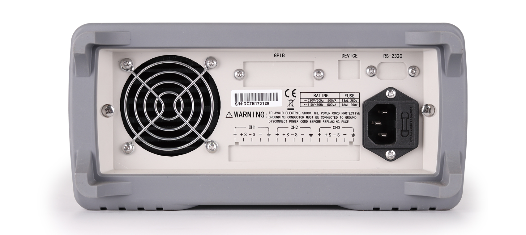 TH6400系列电源前后面板都配备有输出端,具有1/2标准机箱尺寸,配备齐全的通讯接口,支持SCPI和MODBUS通讯协议,使其可以方便的集成于自动化系统上。