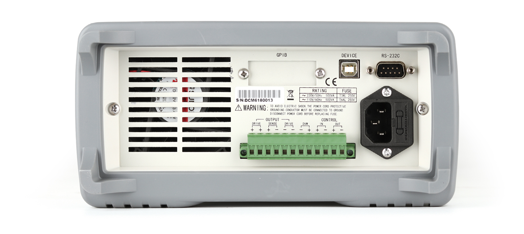 TH6500系列电源前后面板都配备有输出端、采样端和测试端,具有1/2标准机箱尺寸,配备齐全的通讯接口,支持SCPI和MODBUS通讯协议,使其可以方便的集成于自动化系统上。