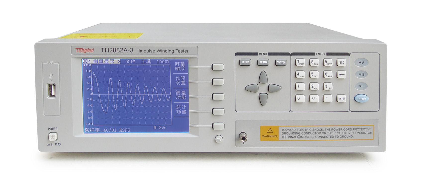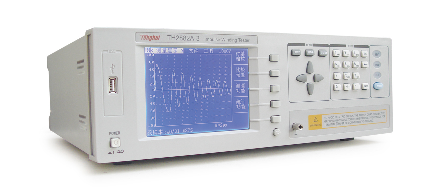 线圈类产品(如变压器、电机等)由于绕线材料、磁性材料、骨架、加工工艺等因素的影响会产生线圈层间、匝间及引脚间等绝缘性能的降低。 TH2882A系列脉冲式线圈测试仪是采用高速取样技术研制的新一代线圈类产品绝缘性能的测试仪器,可为大多数线圈类产品提供测试解决方案。 TH2882A将标准线圈的采样波形存储于仪器中,测试时将被测波形与标准波形比较,根据设定的判据(面积、面积差、相位差、电晕等)以判定被测线圈的优劣。
