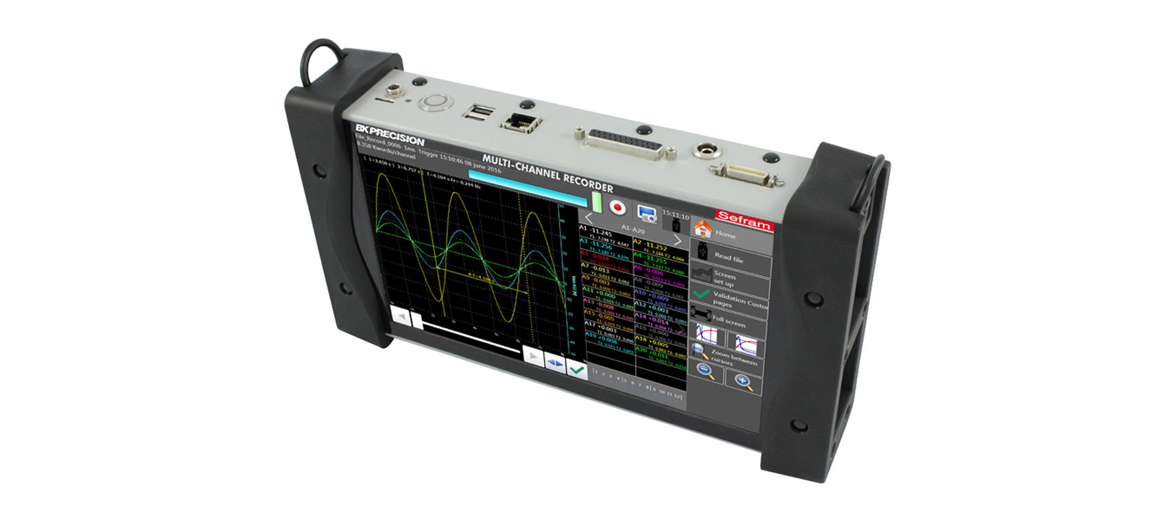新一代的DAS 220记录仪旨在测试您在过程中所需要记录的参数:电压测试传感器测试(0-10V),温度测试(热电偶,PT100-PT1000),电流测试(选装分流器)电阻测试,计数,频率。您可以直观地观察测试结果(图形和数值)以及在记录仪内部或USB存储测试结果,您可以在电脑上通过使用免授权的Das Lab软件来进行数据转移和处理