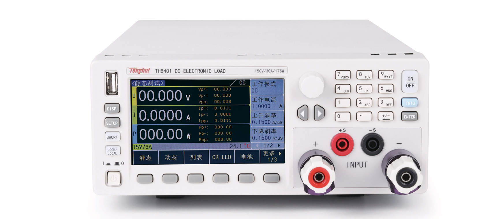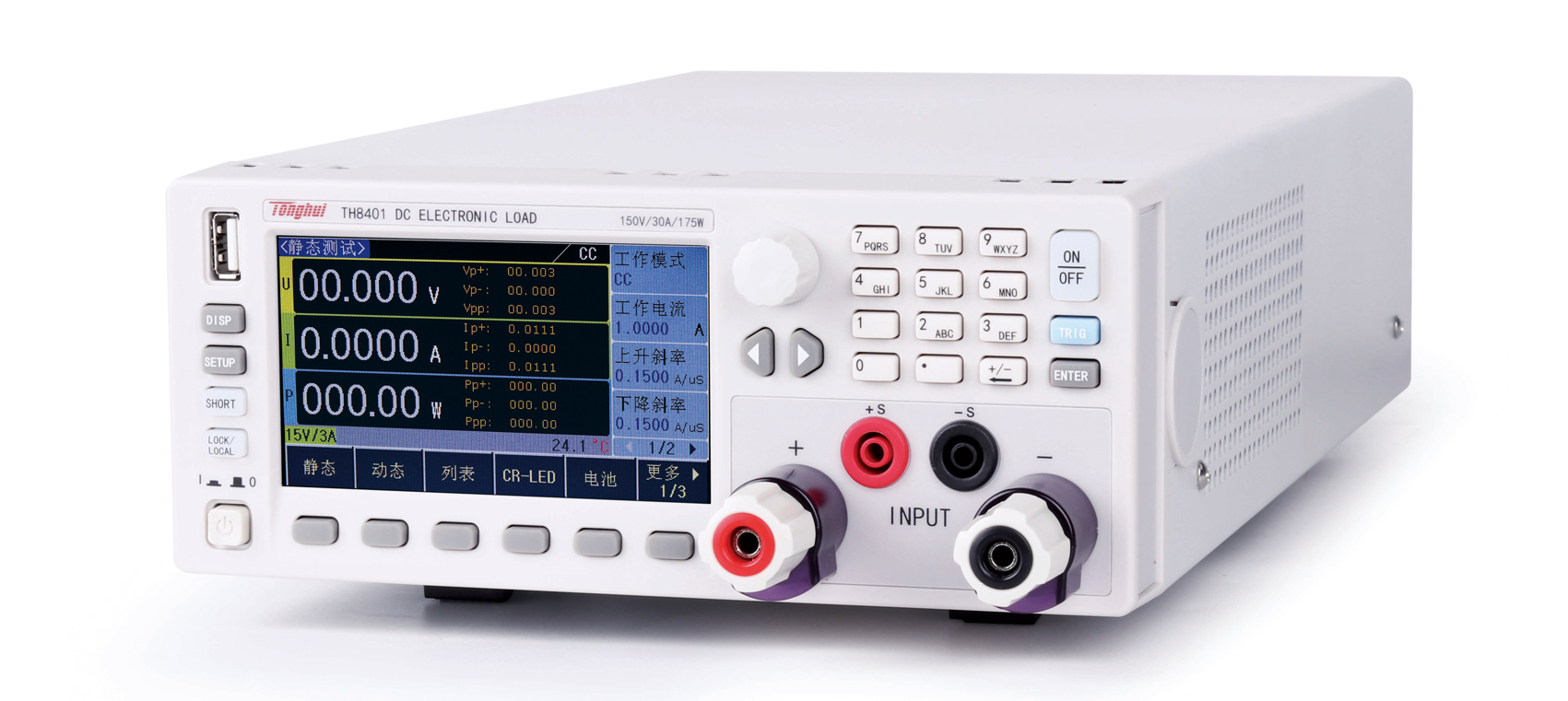 TH8400系列是一款高精度、高智能、易操作的直流电子负载。该系列仪器集合了多种测试功能,性能优越,并且采用液晶屏显示,显示明了,操作菜单化,快捷方便,能很好的适应生产现场快速操作需要以及实验室高精确度高稳定度的需要。